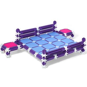 Co by bylo bydlení bez ložnice? Ani zde nepřijdete zkrátka, můžete si sestavit tzv. letiště – širokou postýlku pro pohodlné spaní. Malé stavitelky určitě ocení i malé noční stolky u postele, kam si mohou odložit knížku, nebo šálek s čajem (nejsou součástí stavebnice).