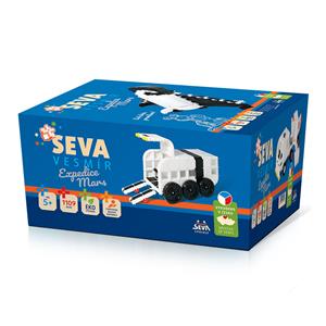 V nových barvách (černé a bílé provedení) postavíte úžasná vozidla a reketoplány. Stavebnice SEVA VESMÍR – Expedice Mars obsahuje 1015 dílů. Je určena dětem od 5 let. Vyhovuje evropské normě EN71 o bezpečnosti hraček a její kvalita je pravidelně kontrolována. Všechny stavebnice SEVA jsou navzájem kompatibilní a jejich možnosti se dají stále rozšiřovat.